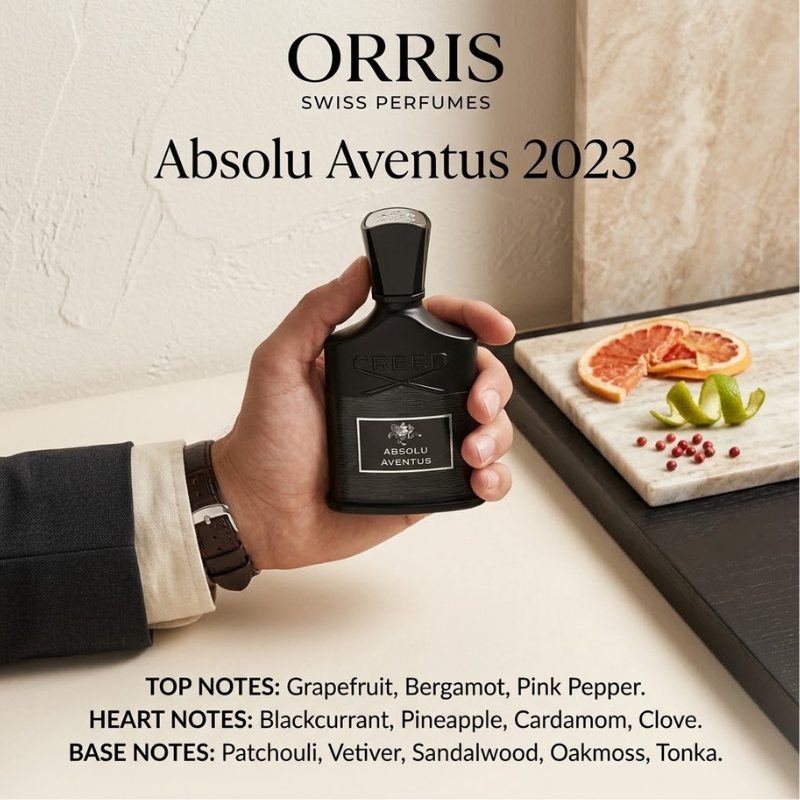 أبسولو أفينتوس 2023 - Absolu Aventus 2023 هو عطر رجالي فاخر يتميز بشخصية قوية وأنيقة تجمع بين الانتعاش، التوابل، والعمق الخشبي في تركيبة غنية ومتوازنة. يمنح هذا العطر حضورًا واضحًا وطابعًا عصريًا راقيًا، ويناسب الرجل الذي يفضل الروائح المميزة ذات الفخامة والثبات.